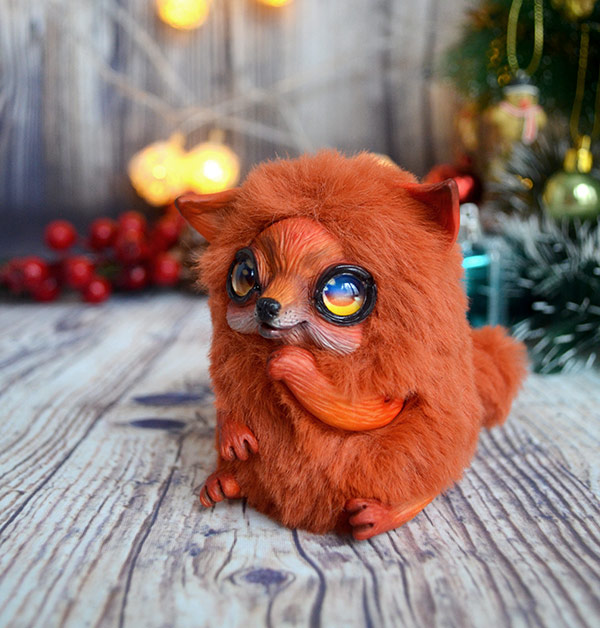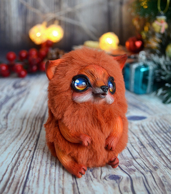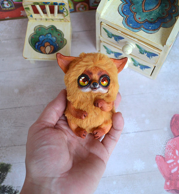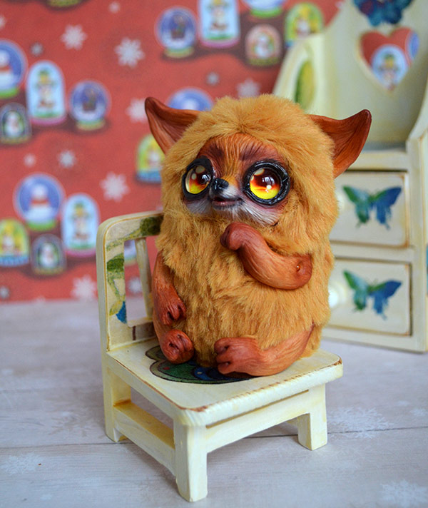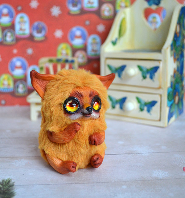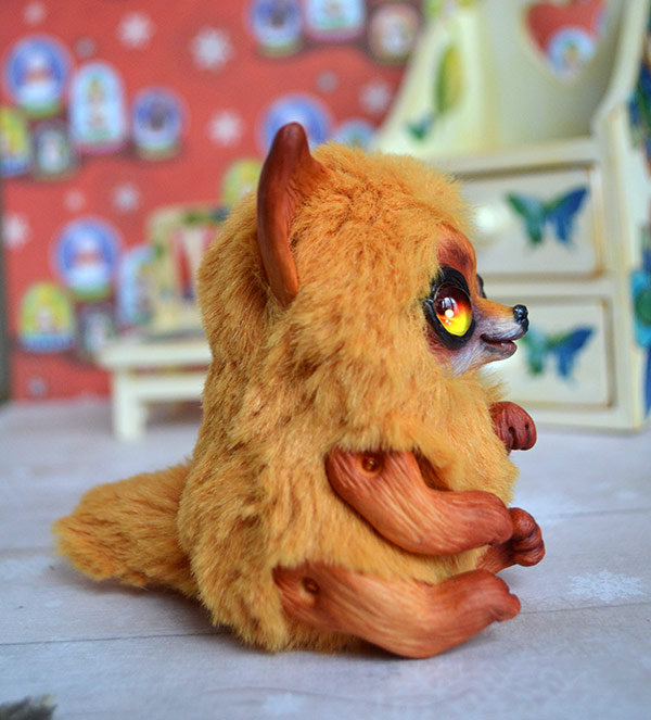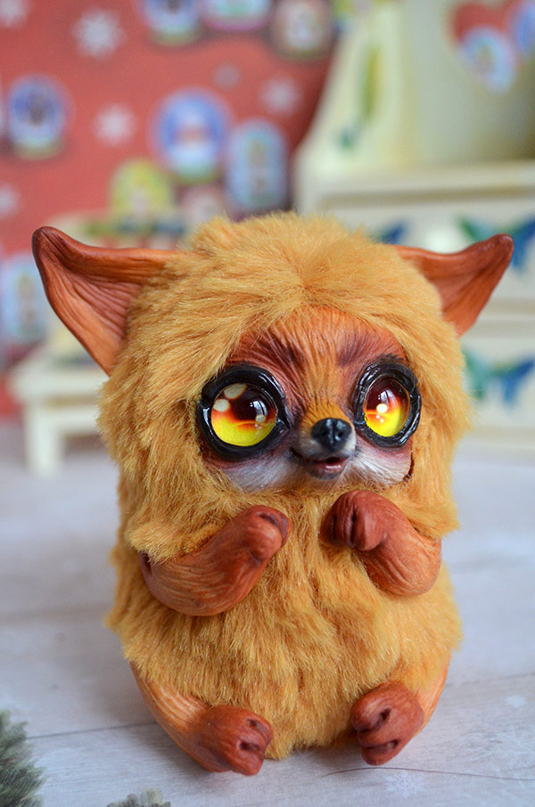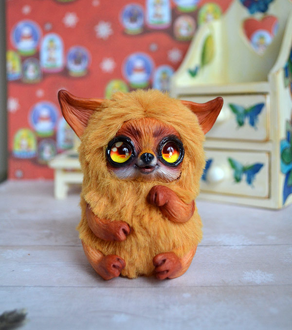 Иногда я леплю странное. Когда нет конкретной цели, но есть, например, кусок симпатичного меха, или просто хочется чего-то яркого и позитивного. Вот и с этим малышом так же. Захотелось желтого и большеглазого. Упс, а потом глаз вдруг стало четыре.